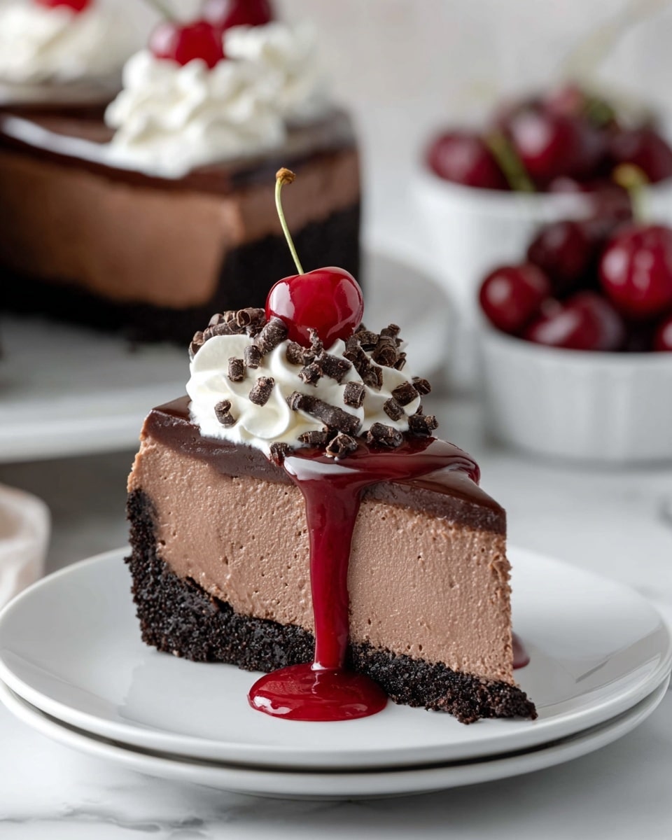One of my favorite things about this Black Forest Cheesecake with Cherry Topping Recipe is how approachable it is—no complex techniques, just simple ingredients that come together beautifully. Whether you’re serving it to guests or treating your family, the extra cherry topping and chocolate shavings seal the deal. Plus, you can make it ahead of time, which is a lifesaver for busy days.