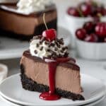 Indulge in a rich and decadent Black Forest Cheesecake featuring a crunchy Oreo cookie crust, smooth chocolate-infused cream cheese filling, and a luscious homemade cherry topping finished with whipped cream and chocolate shavings. This dessert combines classic cheesecake with the beloved flavors of Black Forest cake for an irresistible treat perfect for special occasions or any chocolate and cherry lover’s desires.