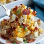 - Make sure to use room temperature butter and cream cheese to help them blend smoothly with the hot potatoes.