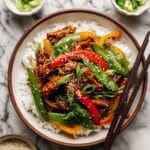 This Chicken Stir Fry with Coconut Aminos is a vibrant and healthy dish featuring tender strips of chicken breast cooked with colorful bell peppers, snap peas, and green onions. Flavored with a savory sauce made from coconut aminos, toasted sesame oil, garlic, ginger, and a hint of honey, this stir fry offers a perfect balance of sweet, salty, and spicy notes. Quick to prepare and perfect served over rice, it’s a nutritious and flavorful meal for busy weeknights.