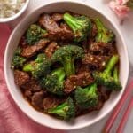 This Chinese Beef and Broccoli recipe features tender slices of marinated flank steak stir-fried with vibrant broccoli florets in a savory and slightly sweet sauce. The beef is lightly charred for texture while the broccoli is steamed to retain its crunch, creating a perfect balance of flavors and textures in a quick and easy meal.
