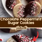 Delight in these festive Chocolate Peppermint Sugar Cookies featuring a tender, peppermint-infused sugar cookie base dipped in rich semi-sweet chocolate and sprinkled with crushed candy canes. Perfect for holiday gatherings or a winter treat, these cookies combine classic flavors with a refreshing minty twist.