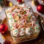 This festive Christmas Cookie Lasagna is a delightful layered dessert featuring a buttery cookie crust, creamy cheesecake layer, rich vanilla pudding, and a fluffy whipped topping. Perfect for holiday gatherings, it combines classic seasonal flavors and textures into a visually impressive and delicious treat.