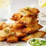 This Crab Rangoon Eggroll recipe offers a crispy, golden fried wrapper filled with a creamy, savory mixture of cream cheese, lump crab meat, and aromatic spices. Perfect as an appetizer or party snack, these eggrolls combine traditional flavors of classic crab rangoon with a convenient handheld format, making them ideal for dipping into sweet chili sauce and garnished with fresh green onions for an extra burst of freshness.