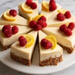 - Prepare the Topping: In a small bowl, gently toss the fresh raspberries with lemon juice. Before serving, spoon or arrange the raspberries atop the chilled cheesecake for a fresh, tangy garnish.