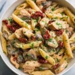 This Creamy Crock Pot Chicken Pasta recipe offers a deliciously comforting meal where tender chicken breasts are slow-cooked to perfection with Italian seasonings, then combined with a rich and creamy sauce packed with cream cheese, parmesan, and fresh herbs. Paired with sun-dried tomatoes, mushrooms, spinach, and your choice of short pasta, this easy-to-make crock pot dish delivers a hearty one-pot dinner that’s perfect for busy weeknights.
