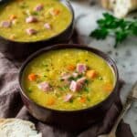 - Serve and garnish: Ladle the split pea soup into bowls and garnish with chopped fresh parsley if desired. Serve hot and enjoy!