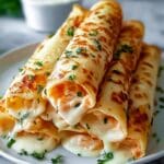 These Crispy Crab and Shrimp Queso Taquitos are a delightful seafood appetizer featuring a creamy, flavorful filling of shrimp, crab meat, and cheese, rolled in flour tortillas and fried to golden perfection. Perfectly seasoned with garlic powder, smoked paprika, and fresh cilantro, they offer a crunchy exterior with a rich, cheesy seafood center.
