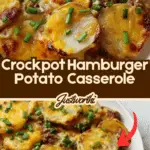 This Crockpot Hamburger Potato Casserole is a comforting, hearty dish perfect for easy meal prep. Layers of seasoned ground beef, thinly sliced potatoes, creamy mushroom soup, and melted cheddar cheese slow cook to perfection, resulting in a delicious and satisfying casserole that’s perfect for family dinners or busy weeknights.