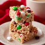 A festive and delightful treat combining classic crispy marshmallow rice cereal bars with colorful Christmas M&Ms and holiday sprinkles. Perfect for holiday parties and family gatherings, these Christmas Krispies Treats are easy to make, chewy, and bursting with seasonal cheer.