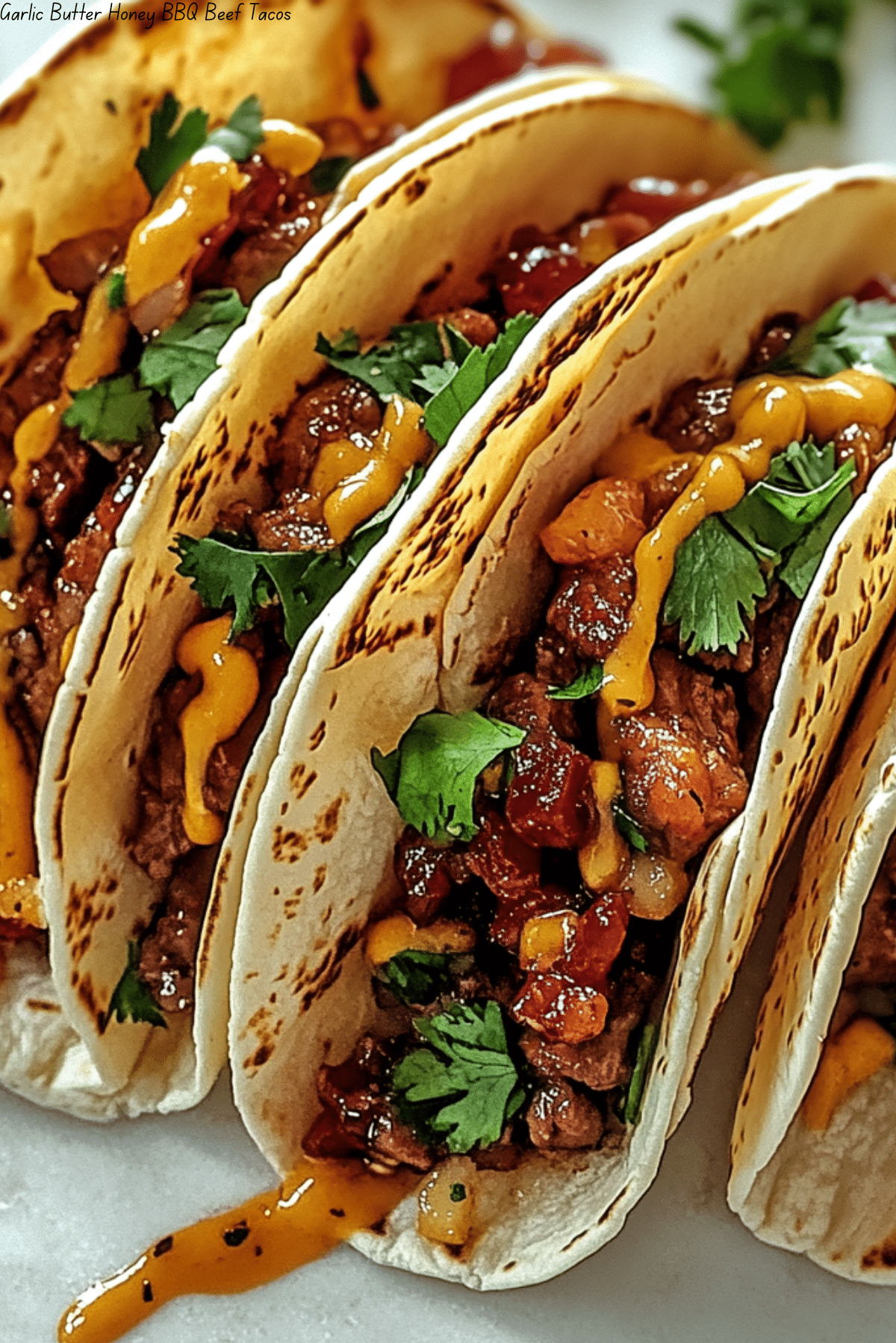 Serve these Garlic Butter Honey BBQ Beef Tacos with a side of Mexican rice, black beans, or a fresh corn salad. Pair with a cold beer or a fruity margarita for a complete meal experience.
