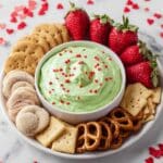 This fun and festive Grinch Dip is a creamy, sweet dessert dip featuring vanilla pudding, cream cheese, and a vibrant green color perfect for holiday gatherings or themed parties. It’s quick to prepare, combining smooth textures with a playful finish topped with heart-shaped sprinkles.