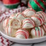 - Decorate: Immediately sprinkle the coated truffles with festive sprinkles and green sanding sugar while the coating is still wet. For an optional finishing touch, melt the red candy melts similarly and drizzle over the truffles.
