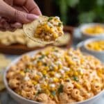 This creamy and flavorful Mexican Corn Dip combines southwest-style corn, mild green chiles, jalapeno, and a luscious blend of mayonnaise, sour cream, and Mexican cheese. Perfect as a party appetizer or snack, it’s chilled to meld the spices and flavors, delivering a refreshing, savory treat inspired by Mexican street corn.