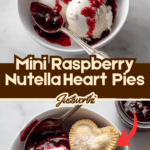 These Mini Raspberry Nutella Heart Pies combine a flaky homemade pastry filled with sweet Nutella and luscious raspberry filling, making for a perfect delightful treat. Ideal for special occasions or a charming dessert, these bite-sized pies boast a beautiful heart shape and a golden crust dusted with coarse sugar.