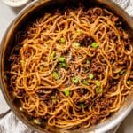 This Mongolian Ground Beef Noodles recipe features tender ground beef simmered in a savory and slightly sweet hoisin-soy sauce, combined with perfectly cooked linguine noodles. Enhanced with garlic, ginger, and a hint of spice, this dish makes a flavorful and satisfying weeknight meal that comes together in just 30 minutes.