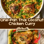 This One-Pan Thai Coconut Chicken Curry is a flavorful and easy-to-make dish featuring tender chicken thighs simmered in a fragrant coconut curry sauce with vibrant vegetables. It’s cooked in a single pan for convenience, paired perfectly with fluffy basmati rice and fresh garnishes for an authentic Thai-inspired meal.