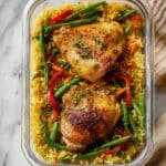 This One-Pan Thai Coconut Chicken Curry is a flavorful and easy-to-make dish featuring tender chicken thighs simmered in a fragrant coconut curry sauce with vibrant vegetables. It’s cooked in a single pan for convenience, paired perfectly with fluffy basmati rice and fresh garnishes for an authentic Thai-inspired meal.