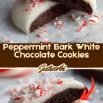These Peppermint Bark White Chocolate Cookies combine rich dark chocolate cookie dough with a festive white chocolate peppermint bark topping. The cookies have a fudgy texture from cocoa and dark chocolate chips, while the white chocolate peppermint bark adds a creamy, minty crunch with crushed candy canes. Perfect for holiday celebrations or anytime you crave a delightful chocolate-mint treat.