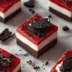 Indulge in a decadent treat with this Red Velvet Oreo Fudge recipe, featuring a rich white and semi-sweet chocolate base tinted with red food coloring, layered with crushed Oreos for a delightful crunch and classic flavor. Perfect for special occasions or satisfying your sweet tooth with a unique twist on traditional fudge.