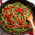 - Add Vegetables: Add the sliced red bell pepper and trimmed green beans to the skillet. Stir-fry for about 5-7 minutes until the vegetables are tender-crisp.