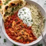 - Serve: Ladle the Chicken Tikka Masala over basmati rice or with naan bread. Garnish with a dollop of plain Greek yogurt and chopped fresh cilantro for added creaminess and freshness.