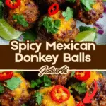 Spicy Mexican Donkey Balls are flavorful beef meatballs infused with a blend of bold Mexican spices, fresh herbs, and a jalapeño kick. Coated in crunchy crushed tortilla chips and baked to perfection, these meatballs are served in a tangy tomato and green chili sauce, making for an irresistibly spicy and cheesy appetizer or main dish.