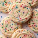 These Sprinkle Sugar Cookies are soft, buttery, and loaded with colorful sprinkles for a fun, festive treat. Perfect for any occasion, these cookies have a delightful crumbly texture and a hint of vanilla sweetness. Rolled in granulated sugar before baking, they come out with a slight crunch and a soft center.