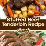 This Stuffed Beef Tenderloin recipe features a tender and juicy whole beef tenderloin filled with a flavorful mixture of sautéed mushrooms, spinach, and aromatic herbs. Finished with a rich pan sauce made from red wine and beef broth, this elegant dish is perfect for special occasions and dinner parties.