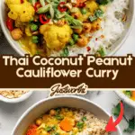 This Thai Coconut Peanut Cauliflower Curry Recipe has become one of my go-to dishes when I want something that feels indulgent but is loaded with wholesome ingredients. I hope you find it just as comforting and easy to make as I do. Give it a try on a cozy night—you might just end up making it a regular in your rotation!