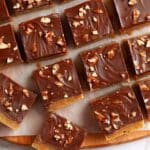 - Set Caramel Layer: Pour the caramel-pecan mixture into a lined or greased square baking dish, spreading it out evenly to form the base layer. Allow to cool slightly while preparing the chocolate layer.