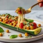 Enjoy a healthy and flavorful meal with these Tuscan Stuffed Zucchini Boats filled with a hearty quinoa and chickpea mixture, fresh spinach, sun-dried tomatoes, and topped with melted mozzarella cheese. This gluten-free, vegetarian dish is perfect for a light dinner or lunch packed with Mediterranean-inspired flavors.
