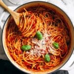A flavorful and easy Vegan One-Pot Spaghetti recipe that combines sautéed vegetables, gluten-free pasta, and marinara sauce into a wholesome, comforting meal. Perfect for a quick weeknight dinner, this dish is oil-free optional, packed with veggies, and garnished with fresh basil and vegan parmesan cheese.