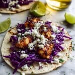 This vibrant Yucatan Fish Tacos recipe features fresh cod marinated in a zesty blend of orange juice, white vinegar, garlic, achiote paste, cumin, and oregano, delivering authentic Mexican flavors. Served on warm flour tortillas and garnished with crisp shredded purple cabbage, creamy sour cream, and spicy jalapeño slices, these tacos are perfect for a flavorful and easy-to-make meal that captures the essence of Yucatecan cuisine.